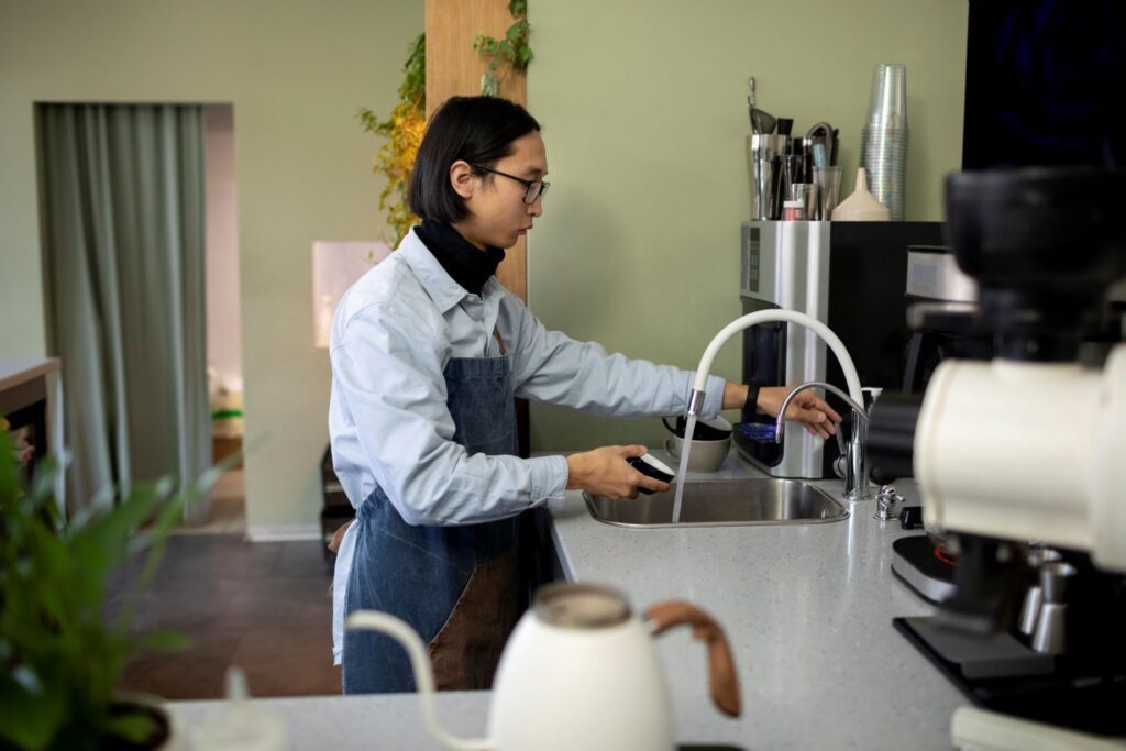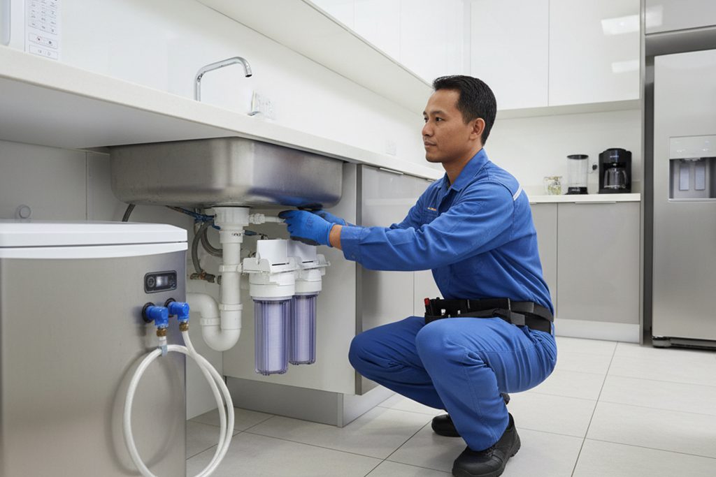 Installing under-sink water filtration units for high-quality drinking water for employees.